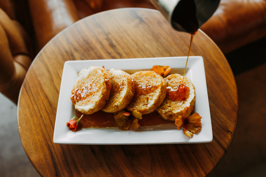 Tupelo Honey hosts a Southern-inspired brunch beginning at 9 a.m. on the weekends. While the carefully curated menu offers something new each season, the melt-in-your-mouth biscuits are always on tap and should be enjoyed alongside the Tupelo Shrimp & Grits, Fried Chicken & Waffles, or the Mountain Morning Bowl (featuring two sunny-side up eggs, Parmesan and rosemary potatoes, cheddar cheese, chopped bacon, salsa, and roasted red pepper sauce over stone-ground goat cheese grits).